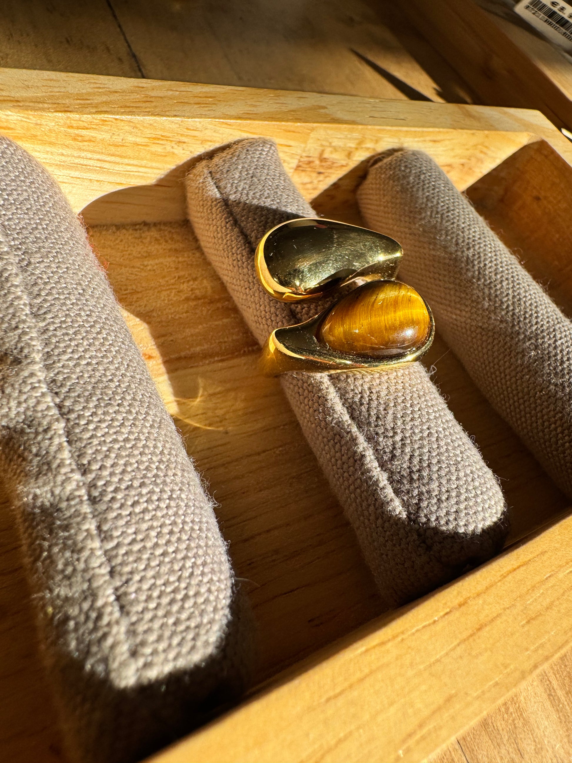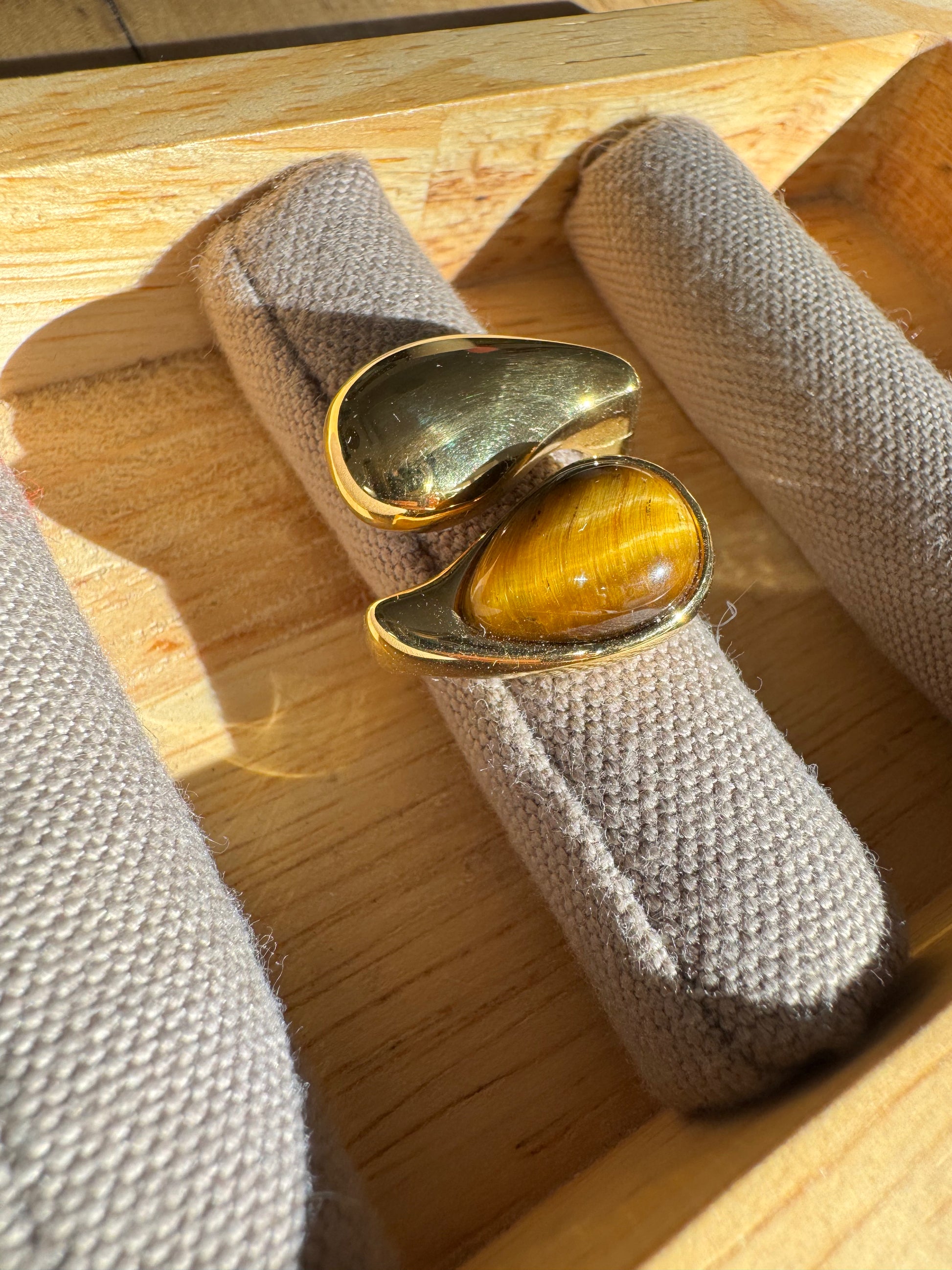 Sofisticado y atemporal, el anillo Eterna está fabricado en acero inoxidable, combinando resistencia y estilo. Su piedra central en tono marrón aporta calidez y profundidad, reflejando elegancia natural y fuerza interior. Un diseño clásico que nunca pasa de moda.