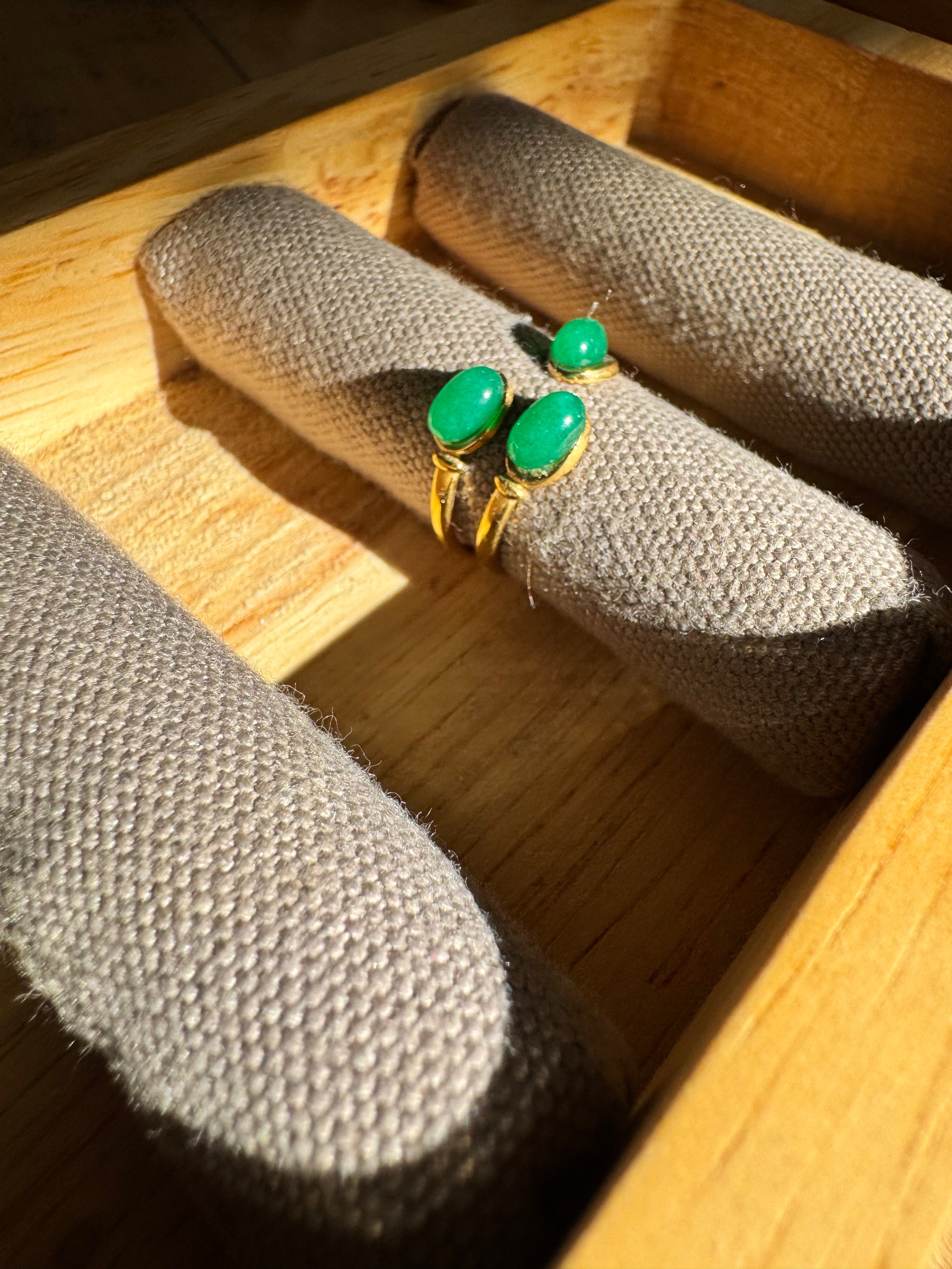 Elegante y luminoso, el anillo Grace está elaborado en acero inoxidable con un delicado acabado dorado. En la parte superior, tres pequeñas piedras en tono verde esmeralda aportan un toque de color y distinción. Una pieza fina y equilibrada que refleja elegancia en cada detalle.