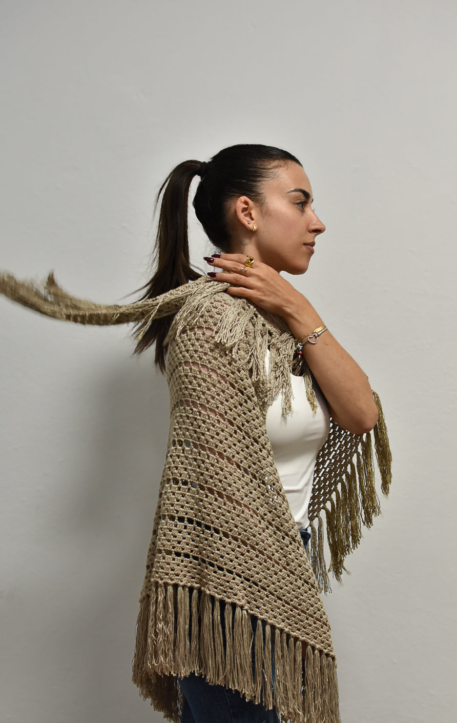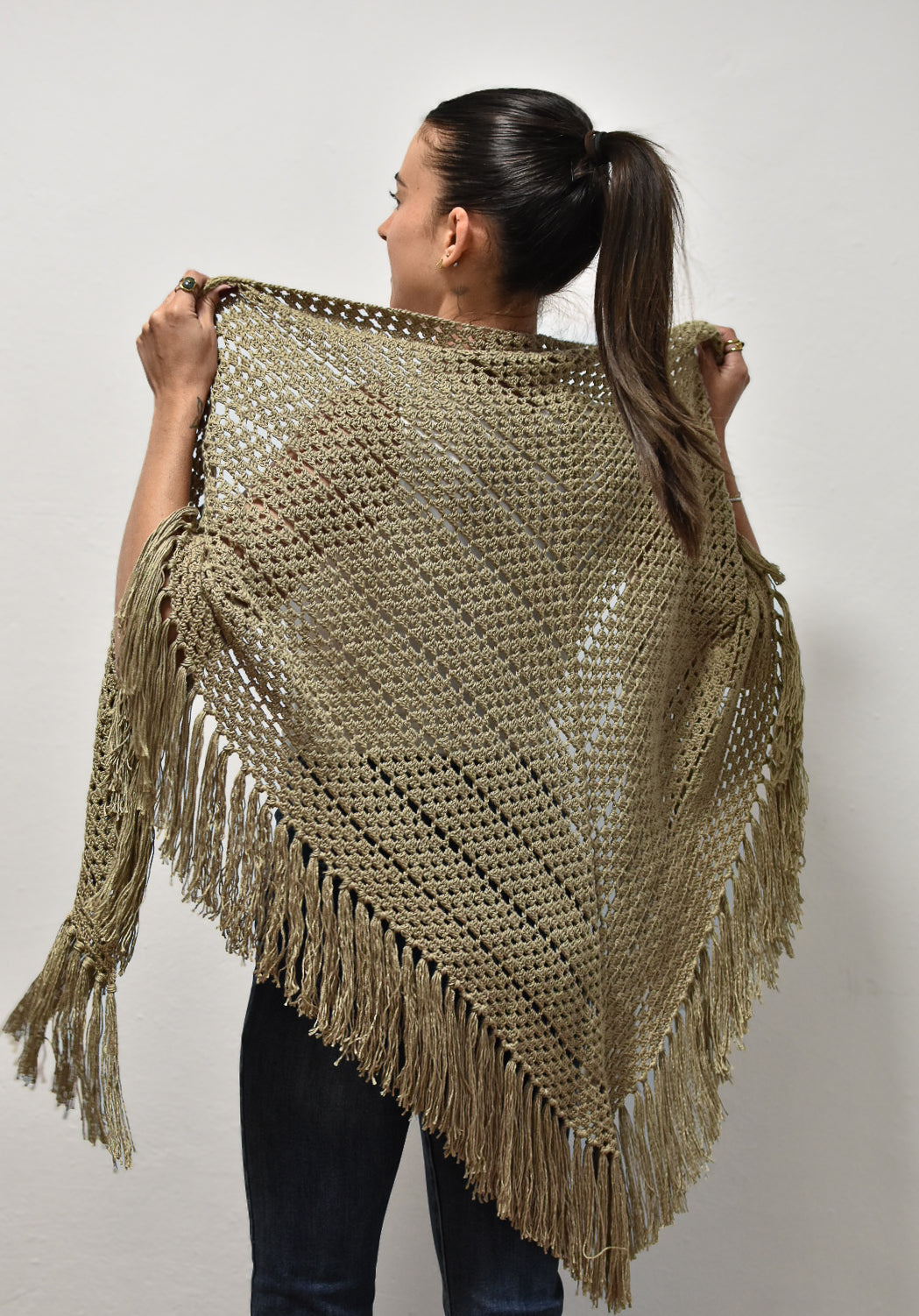 El chal Terra es una creación artesanal elaborada a mano con hilo de bambú 100% natural. Su tejido destaca por ser fresco, transpirable y sostenible, ideal para acompañarte en cualquier época del año.