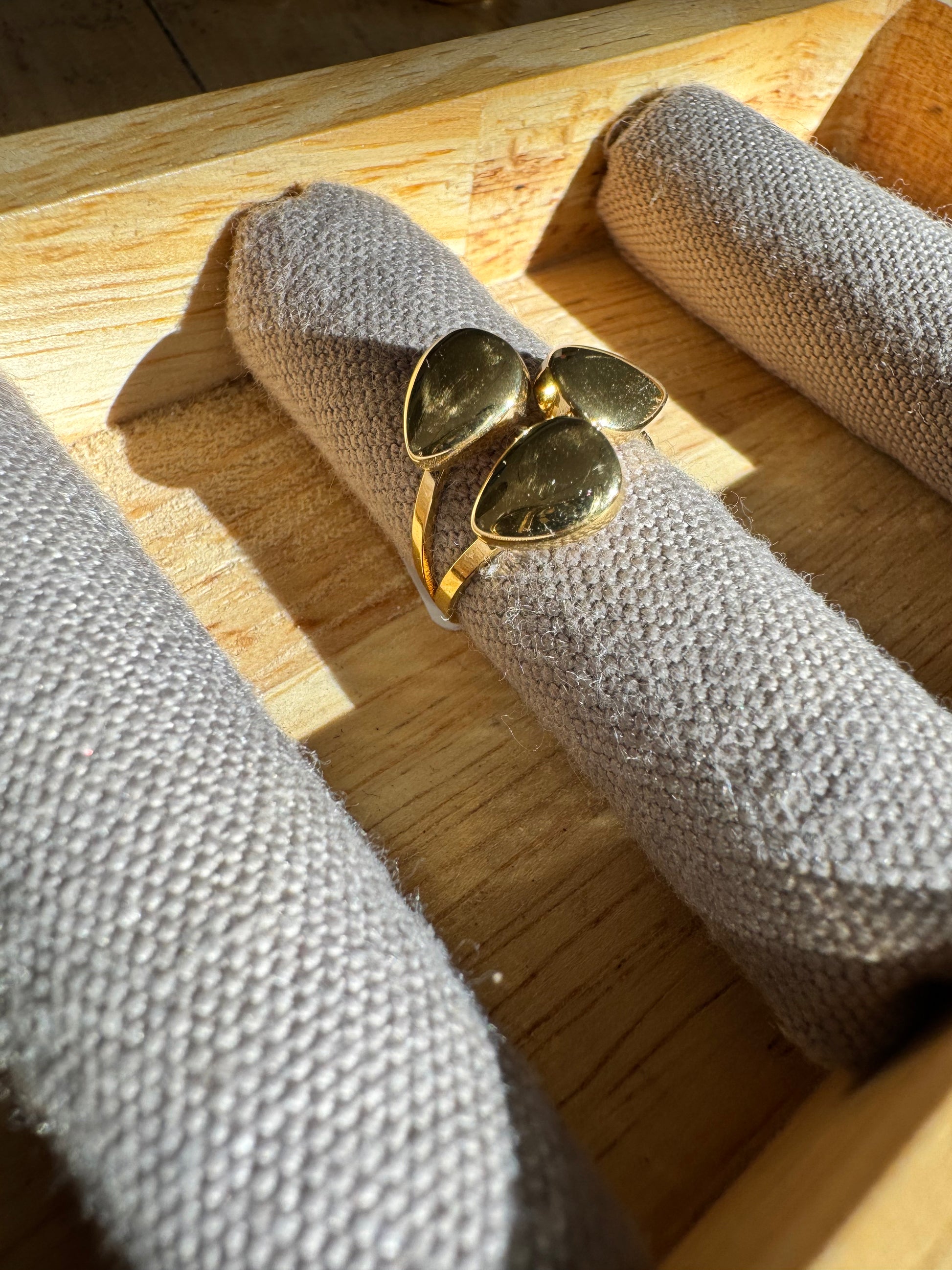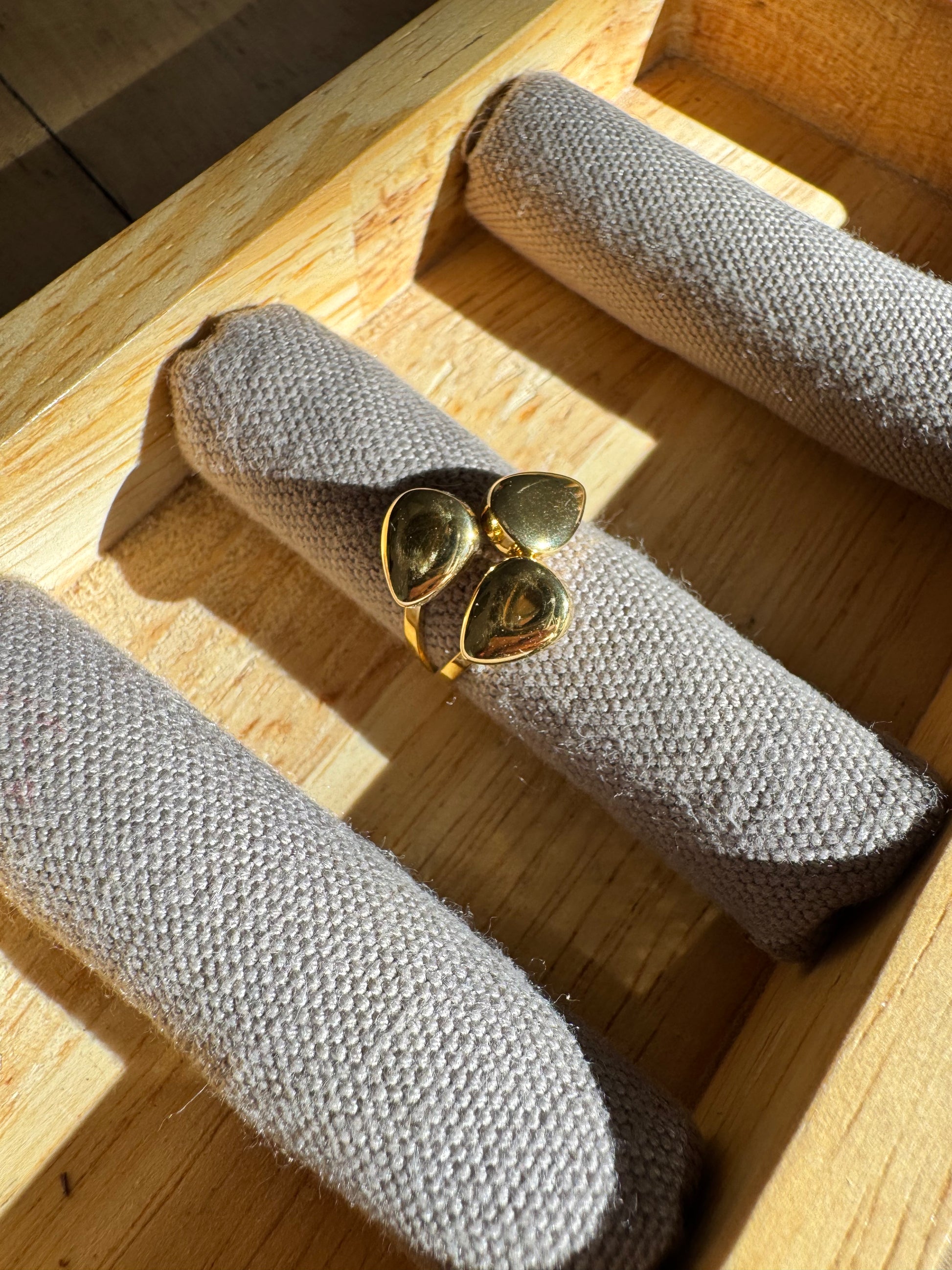 El anillo Zenia es una pieza elegante y moderna, fabricado en acero de color dorado. Su diseño destaca por tres piedras separadas en el centro, que aportan un toque único y sofisticado. Cada piedra, en su propia independencia, crea un equilibrio visual que transmite armonía y fuerza. Zeniaes un anillo minimalista pero lleno de carácter, ideal para quienes buscan un accesorio contemporáneo y distintivo, con un toque de serenidad y elegancia.